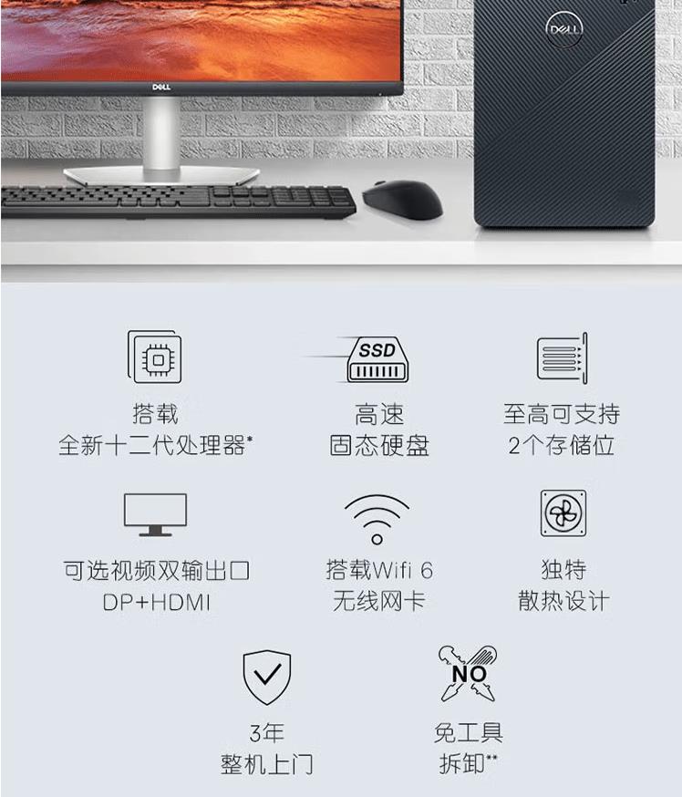 戴爾(DELL)靈越3910-18N6家用辦公學(xué)習(xí)網(wǎng)課娛樂臺式電腦主機(jī)12代i5 16G 256G+1T獨(dú)顯 加27英寸全高清顯示器(S2721NX)